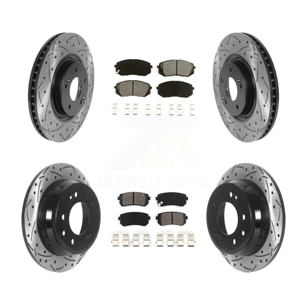 Drill Slot Disc Brake Rotors Semi-Metallic Pad Front Rear Kit For Hyundai Tucson