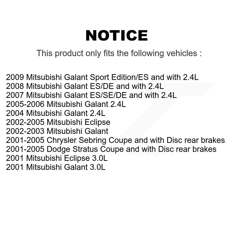 Disc Brake Rotor/Ceramic Pads/Wheel Bearing Hub Assembly Kit for 2001-2005 Chrysler Sebring / 2001-2005 Dodge Stratus / 2001-2005 Mitsubishi Eclipse / 2001-2009 Mitsubishi Galant