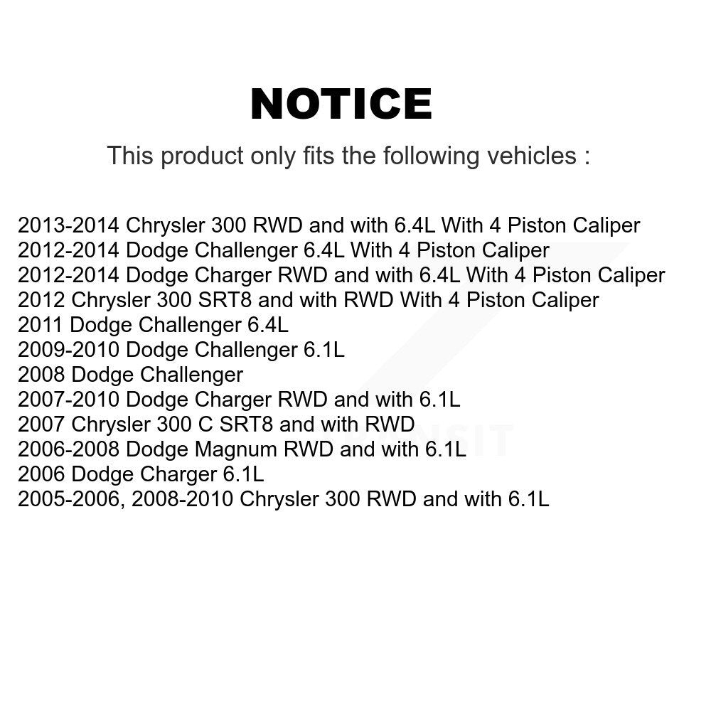 Disc Brake Rotor/Ceramic Pads/Wheel Bearing Hub Assembly Kit for 2005-2014 Chrysler 300 / 2008-2014 Dodge Challenger / 2006-2014 Dodge Charger / 2006-2008 Dodge Magnum
