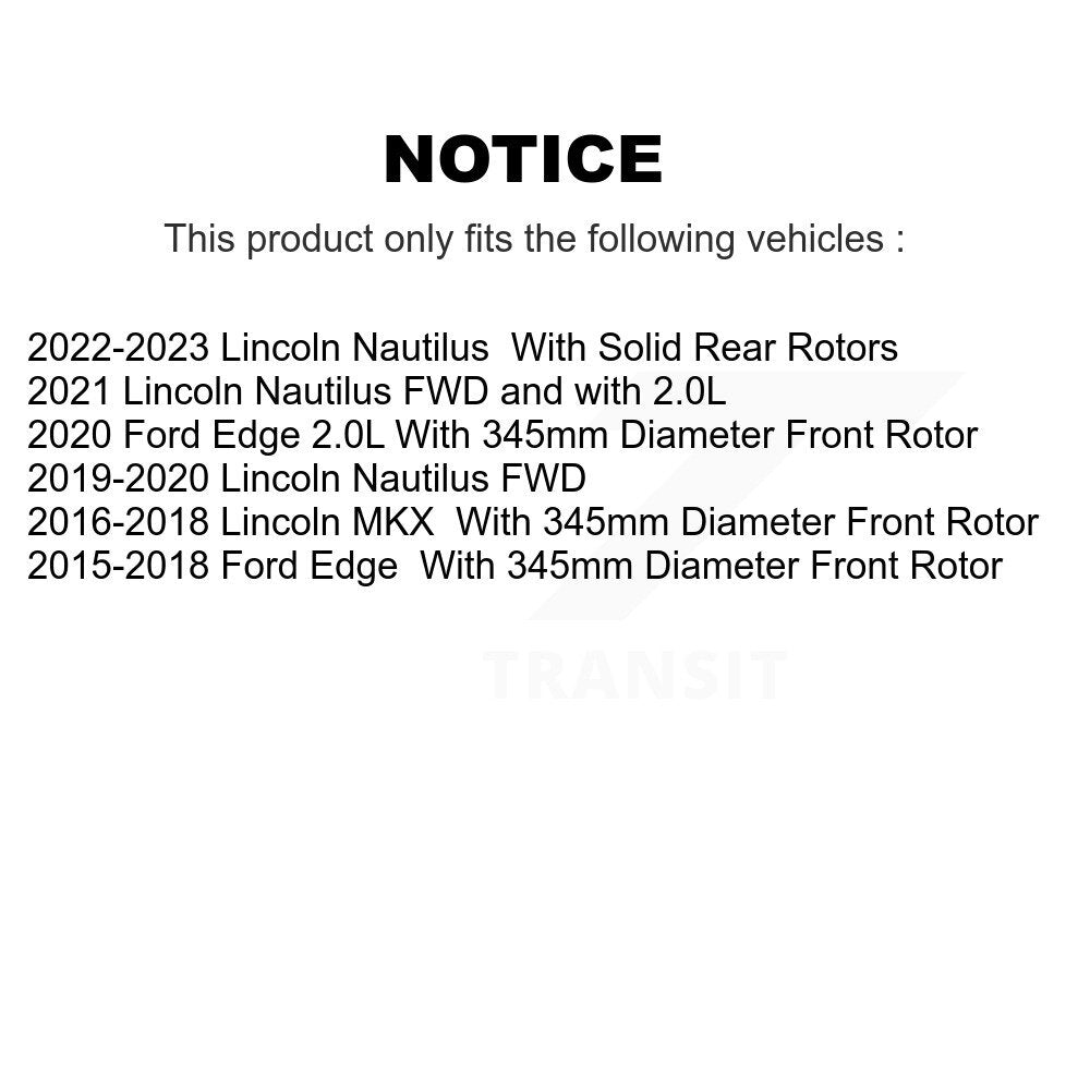 Disc Brake Rotor/Semi-Metallic Pads/Wheel Bearing Hub Assembly Kit for 2015-2020 Ford Edge / 2016-2018 Lincoln MKX / 2019-2023 Lincoln Nautilus