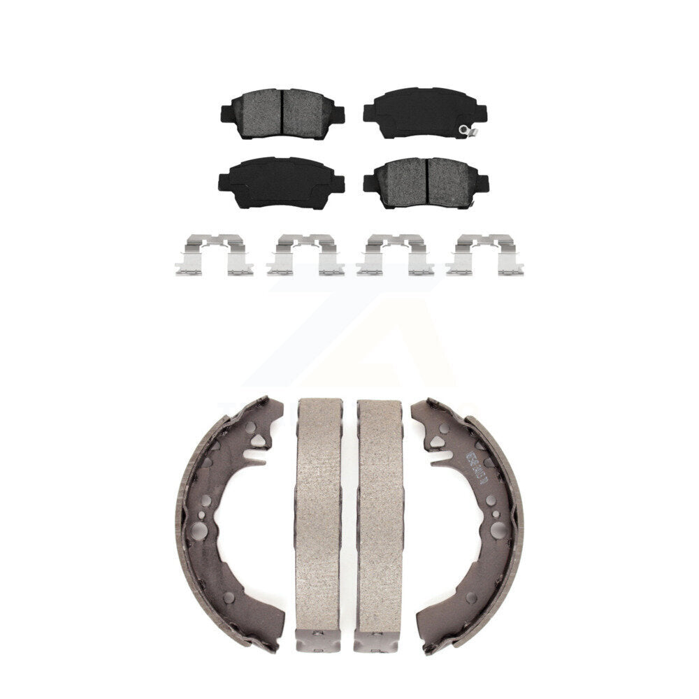 Semi-Metallic Brake Pads And Drum Shoes Front Rear Kit For 2000 Toyota Echo