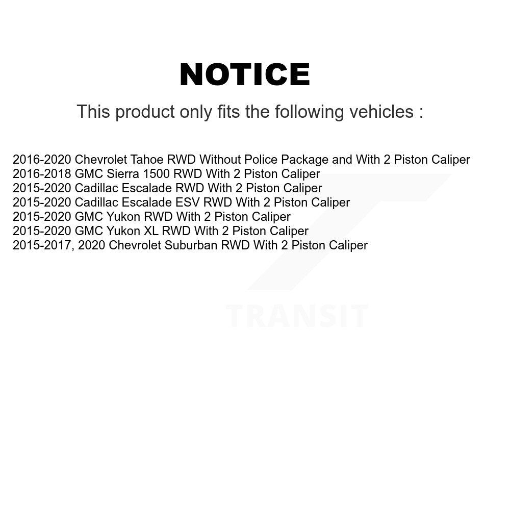 Disc Brake Rotor/Semi-Metallic Pads/Wheel Bearing Hub Assembly Kit for 2015-2020 Cadillac Escalade / 2015-2020 Cadillac Escalade ESV / 2015-2020 Chevrolet Suburban / 2016-2020 Chevrolet Tahoe / 2016-2018 GMC Sierra 1500 / 2015-2020 GMC Yukon / 2015-2020 GMC Yukon XL